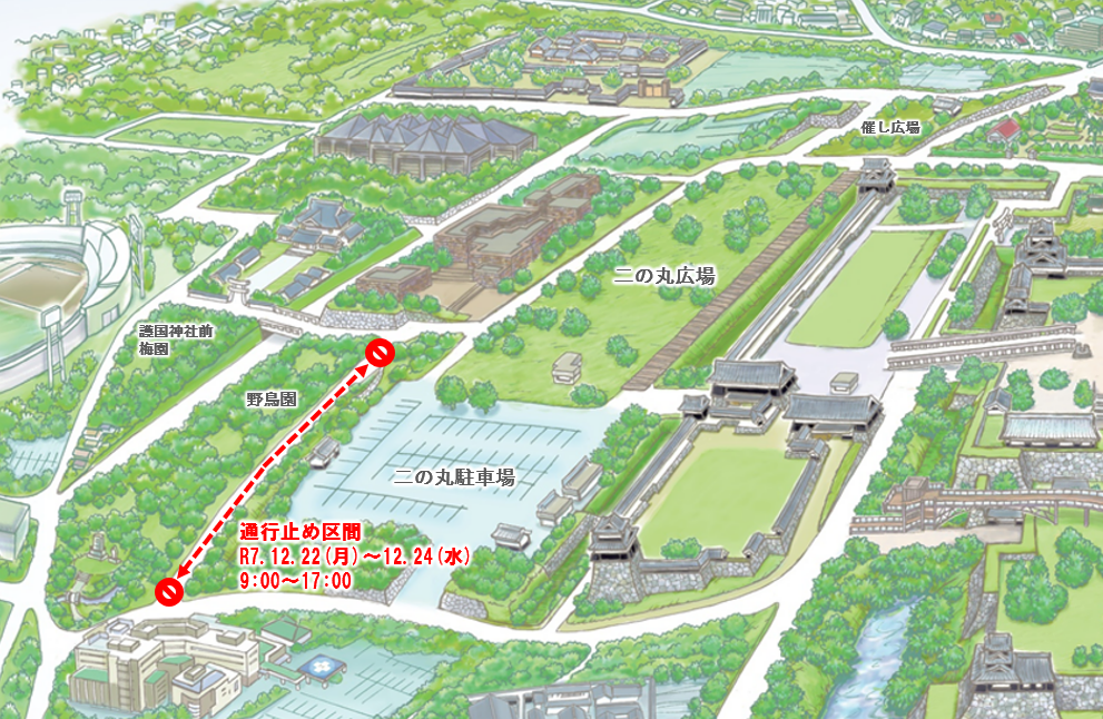 外灯の改修工事に伴い、以下のとおり歩道が通行止めとなります。
